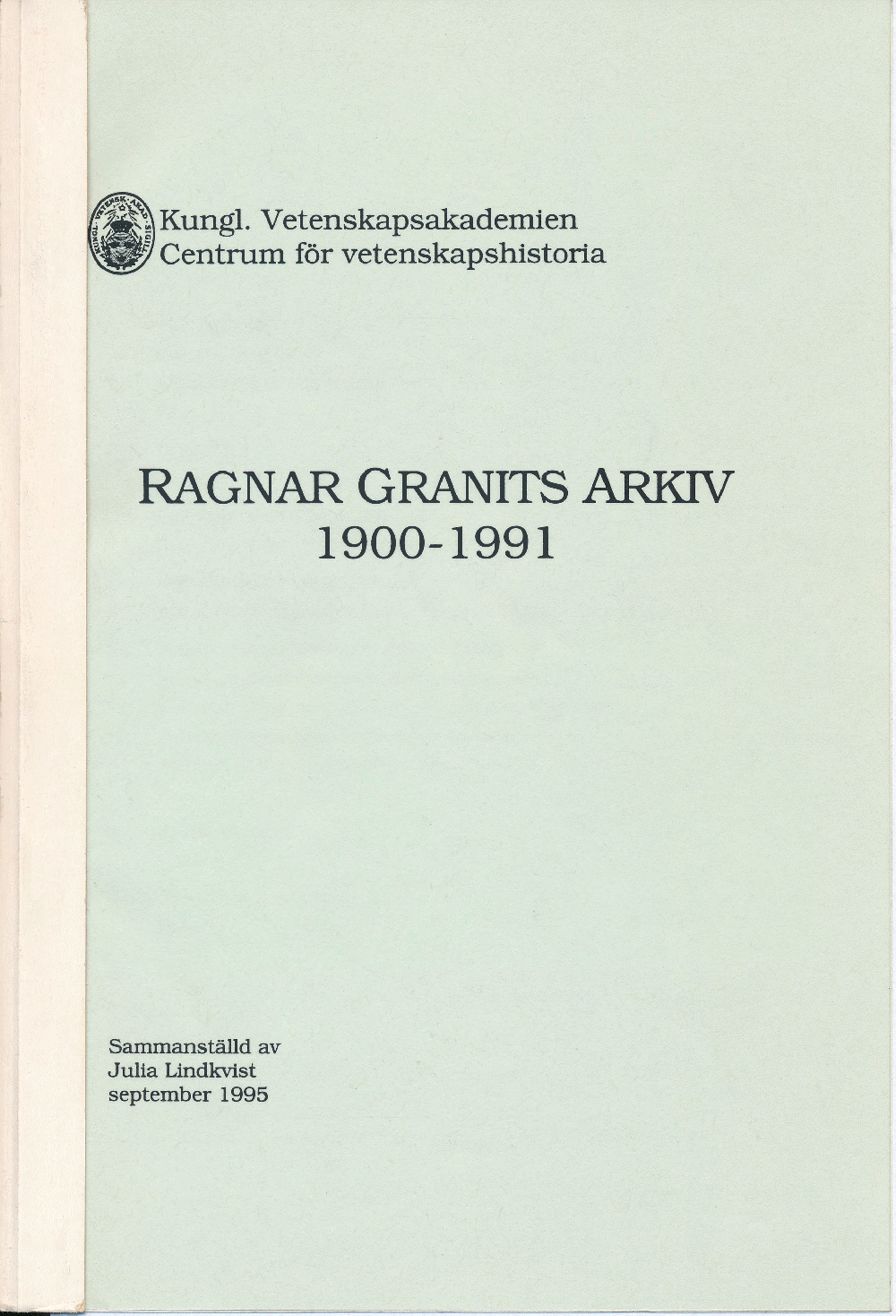 Ragnar Granits arkiv 1900-1991. Sammanställd av Julia Lindkvist, Kungl. Vetenskapsakademien, Centrum för vetenskapshistoria september 1995, 112 p.